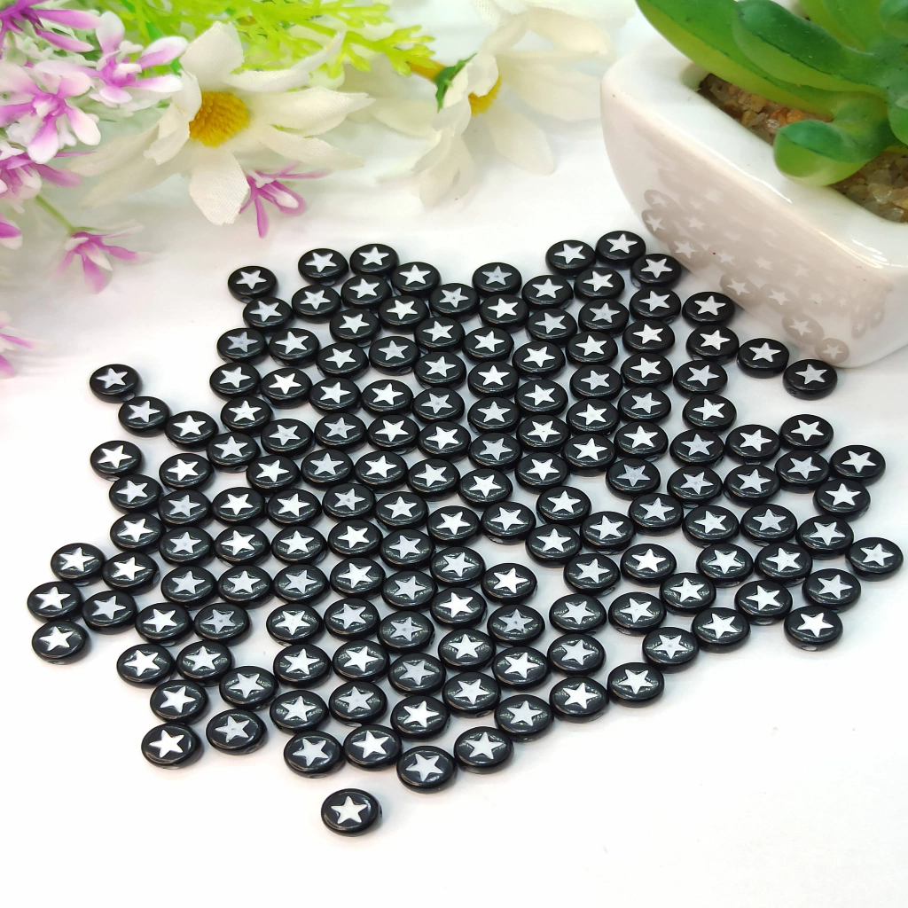 Mix Achatado Estrela 7mm Preto/Branco Passante (50g)